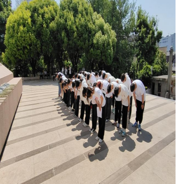 在专业讲解员的带领下,全体师生一同参观抗战胜利博物馆,感悟山河破碎的岁月云南先烈的抗日精神和爱国主义精神;在抗战胜利纪念碑前,师生共同朗诵《永远跟党走》、开展“爱国誓言”宣誓、向革命烈士献花,以庄严的行动,致敬先辈!