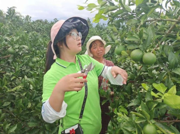 传是老一辈的责任,承是当代青年的使命。为更好的助力乡村全面振兴,团队青年学生始终坚持艰苦奋斗的精神,清晨跟随龙橙基地主管人员上山,每个人拜一名村民为师,在田间地头学习如何辨别柑橘品种、如何修剪柑橘枝叶的相关知识与技能,现场开抖音进行“云”直播,向青年学生和网友们宣传辨别柑橘种类的技巧和修枝知识;为助力乡村美化建设行动,依托田间课堂公共区域,齐心协力为村民绘制“101彩绘橙功记”墙绘,以绘图的形式科普思维导图,旨在通过墙绘方式,丰富当地文化载体,美化乡村环境,落实“我为群众办实事”要求,为后续建设与合作奠定文化基础。