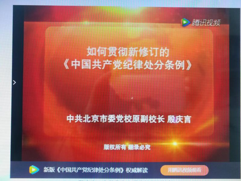 会议指出,《条例》的出台,体现出以习近平同志为核心的党中央高瞻远瞩,坚持探索实践、提炼总结,将党的纪律建设的理论、实践和制度创新成果以党规党纪的形式固定下来,使全面从严治党的思路举措更加科学、更加严密、更加有效。在支部大会上,张书记带领全体党员学习了新修订的《条例》的特点、新修订的《条例》增加内容、如何贯彻新修订的《中国共产党纪律处分条例》及《条例》划出新的禁区等内容,集中收看了中共北京市委党校原副校长殷庆言权威解读新版《中国共产党纪律处分条例》视频。