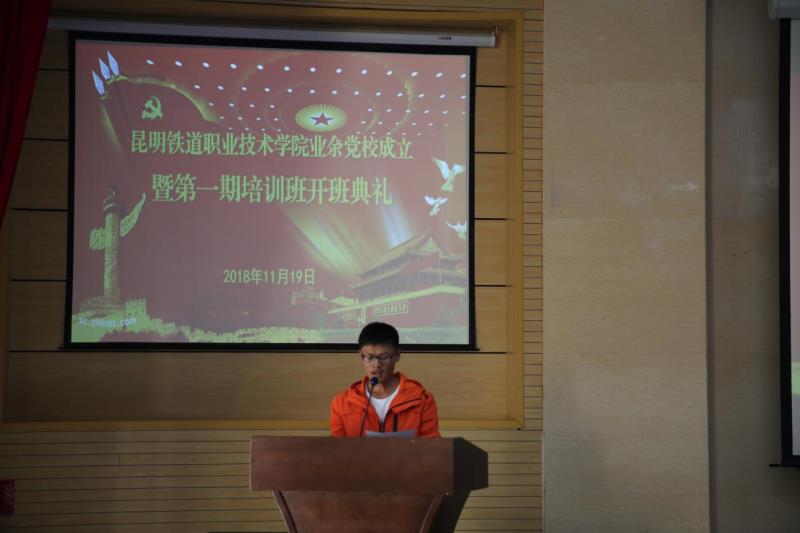 开班典礼在庄严的国歌声中拉开帷幕。学院党委委员、纪委书记张学云同志宣读了《关于成立中共新葡萄AMG官方网站业余党校的通知》,党委委员、副院长谢文同志宣读了《中共新葡萄AMG官方网站业余党校管理制度》。学员代表张艳昆同学进行表态发言。
