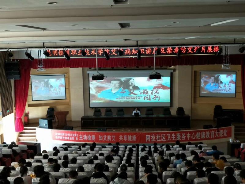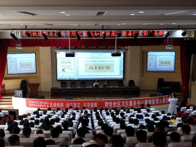 在第31个世界艾滋病日来临之际,为了认真落实《云南省教育厅关于组织开展2018年世界艾滋病日宣传教育活动的通知》文件精神要求,系统地推进防艾宣传教育工作,进一步让同学们深入了解艾滋病的危害,提高对艾滋病的防范意识,我院学生处于2018年11月30日中午1点在学院睿知楼一楼报告厅组织学院400名学生代表参加了艾滋病知识讲座及禁毒防艾影片展播。