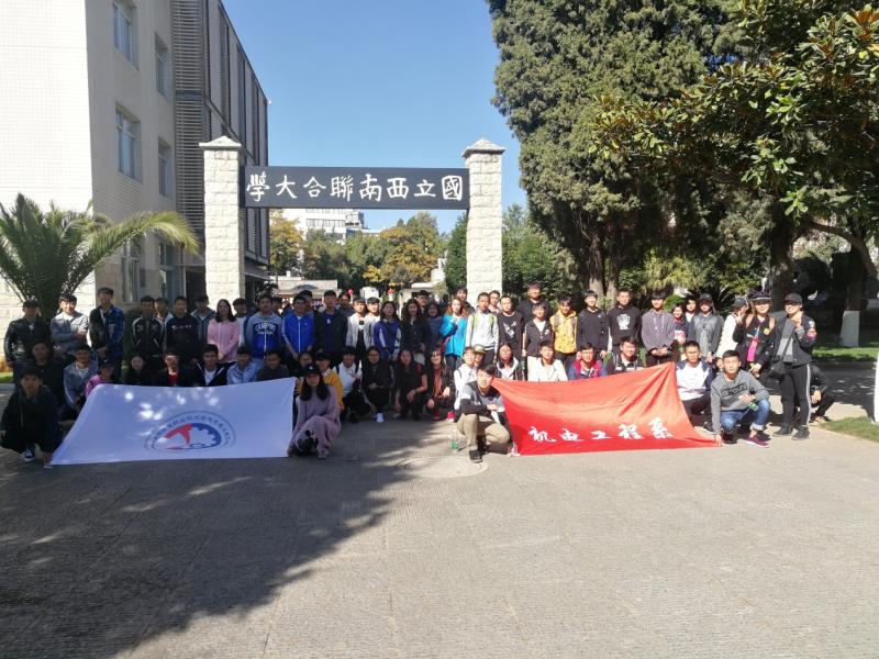 为深入学习贯彻党的十九大精神,重温党的奋斗历史,继承和发扬党的光荣传统。让学生更好的了解中国的发展历史,教育引导广大学生“不忘初心,砥砺前行”,进一步增强青年学生的使命感和责任感,旨在缅怀抗日战争时期,先进的知识文化分子保存中华民族的文化命脉和教育实力的无私奉献精神。20181130日,机电工程系组织学生干部参观了革命红色基地—国立西南联合大学旧址。机电工程系辅导员林波老师,辅导员李惠行老师率近百名大学生参加了此次活动。本次活动由机电工程系团学会青年志协综合部策划及组织。