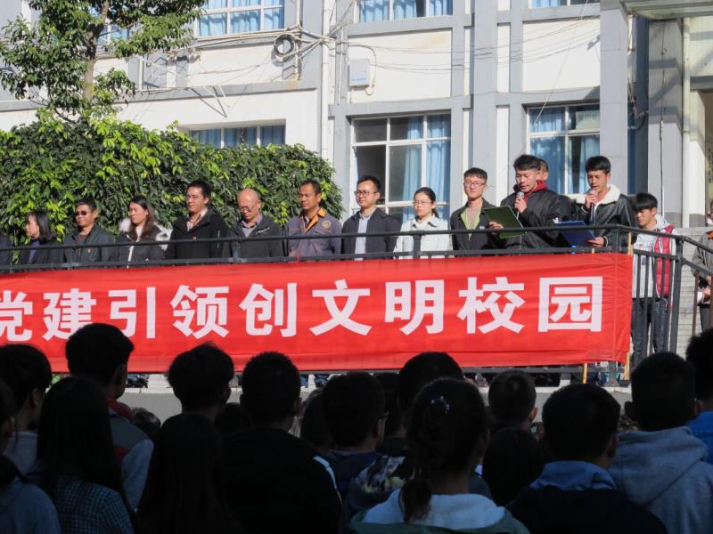 12月10日上午升旗仪式后,赵伟书记和轨道交通专业部党支部党员代表电气工程系和机车车辆系全体教职工进行了创文明校园倡议。党员代表们在此次创文明校园中郑重倡议“校园安全、重在建设,校园文明、在与你我”。倡议的目的是以办人民满意教育为目标,以思想道德教育为核心,科学文化教育为基础,校园文化建设为载体,努力创建文化氛围浓厚、校园环境优美、工作秩序井然的文明校园。旨在告诉我们每个同学,要加强自己的道德素养,提高自己的文明规范,做一个文明人,行文明事。