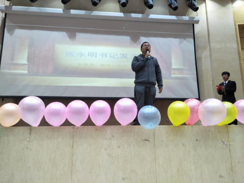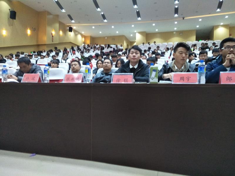 机电工程系书记张永明老师上台为此次霓虹杯话剧大赛致辞。张永明老师说道:“在大学校园里,大家能够在这样的平台,以话剧的形式来演绎大学生活,传承经典,发扬优秀传统文化,这是当代大学生最值得提倡的,也是把高雅的艺术带进校园的最好方式。”