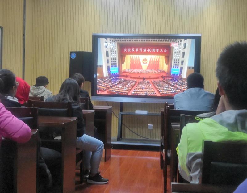 12月18日上午,新葡萄AMG官方网站党委组织了全校师生共同观看了庆祝改革开放四十周年大会的实况,并采取多种形式开展学习讨论,老师和学生们感想颇深,纷纷发表自己对改革开放四十周年的看法。