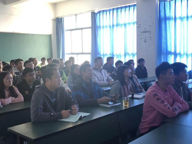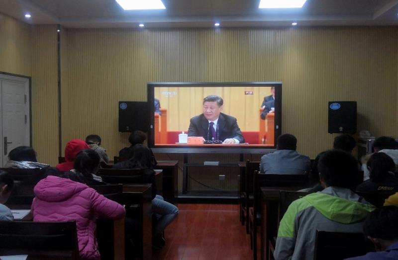 图为机电工程系组织教师和学生观看大会实况