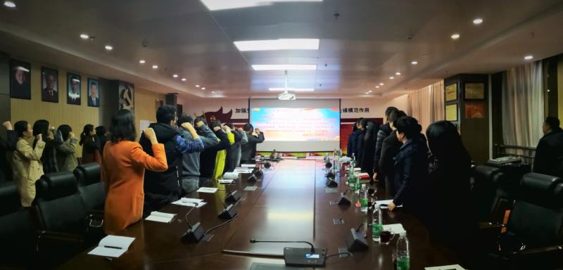 全体党员以集体宣誓的方式,开展了重温入党誓词活动。在鲜红的党旗下,全体党员佩戴党员徽章,举起右手、握紧拳头,庄严宣誓。