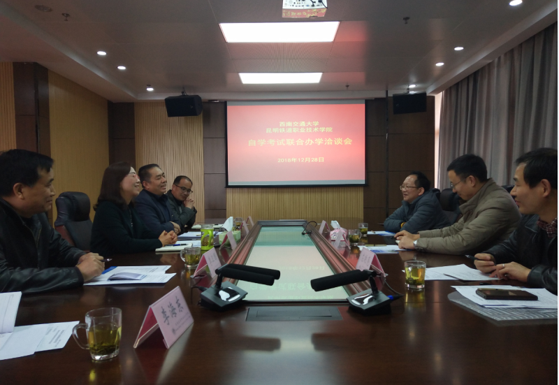 2018年1228日新葡萄AMG官方网站与西南交通大学洽谈自学考试联合办学事宜,云南省招生考试院刘鹏处长参加会议