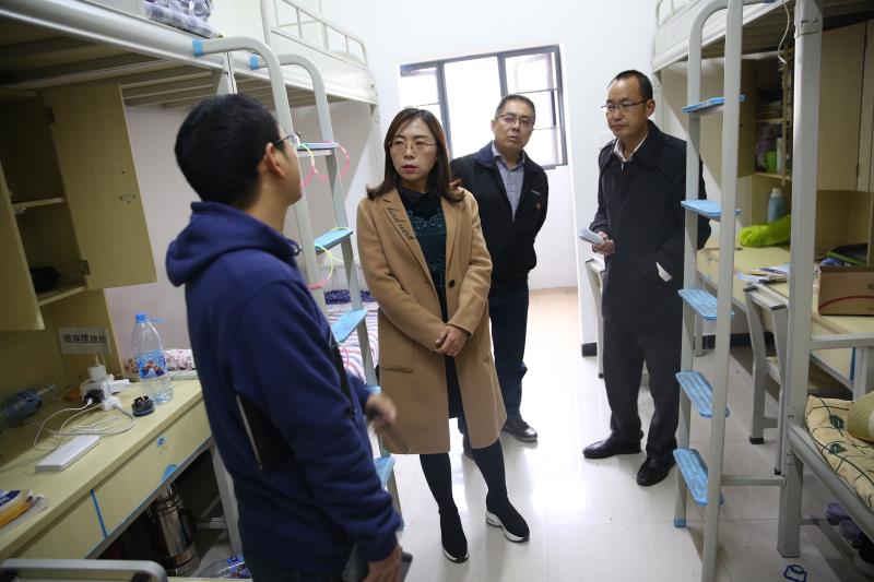 随后,李瑞林同志深入学生宿舍,了解学生住宿及生活情况,她重点检查了学生宿舍楼消防设施、应急通道等场所,详细询问了实际工作中存在的困难和问题,提出了对安全隐患的整改建议。