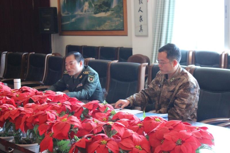 会后,赵永斌副部长和鲁子义参谋在李徕同志和王超同志的陪同下检查了武装部办公室、装备库等工作场所。