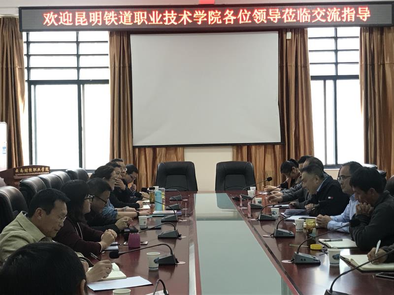 为学习兄弟院校在人才培养和迎评促建工作的经验做法,进一步提高学院迎评促建工作的有效性和针对性,2019320日,由学院谢文副院长、乔吉祥副院长带队,院办、教务处、招生就业处、铁道机车车辆系、铁道电气工程系、铁道运输系、机电工程系、思政教学部、基础教学部、评建办等部门负责人及有关人员到云南财经职业学院进行学习交流。