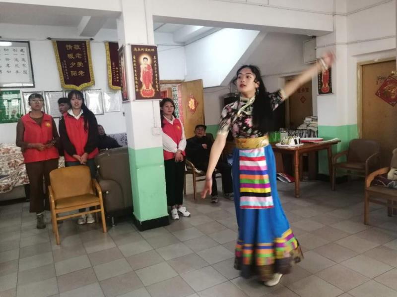 志愿者为敬老院老人表演了精心准备的节目。《魔术表演》《纳西舞蹈》《感恩的心手语》引起了大家的阵阵欢笑。《童年》《稻香》《粉红色的回忆》《水手》《讲故事:强渡大渡河》《学习雷锋好榜样》勾起大家对美好往事的记忆。爷爷奶奶也为志愿者们带来了即兴的舞蹈和歌曲,引来了志愿者们的互动与掌声。