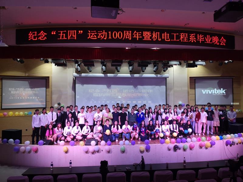 2019年4月25日,机电工程系纪念“五四”运动100周年暨毕业晚会在学院报告厅举行。机电工程系书记张永明、主任许剑伟及辅导员老师出席,全系500余名学生观看了晚会。
