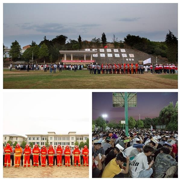 为认真贯彻落实教育部、云南省教育厅“关于做好2019年防灾减灾日有关工作”的通知精神,进一步加强学院地震、火灾应急管理工作,提升学院师生在面对地震、火灾等突发事件发生时的应对能力,最大限度地减轻地震、灾害、突发事件造成的人身伤害及损失,培养学生终身受益的安全素养,在第十一个“防灾减灾日”到来之际,2019年5月9日傍晚,新葡萄AMG官方网站分别在南北两院举办了4场以教学楼、学生宿舍为模拟场景的地震、火灾、防暴恐袭击突发事件应疏散逃生演练活动。学院党委书记张志宏,党委委员、副院长乔吉祥,党委委员、副院长尹光,党委委员、副院长谢文,党委委员、纪委书记张学云,学院中层干部、保卫处、学生处、各系(部)辅导员、班主任、晚自习值守老师、保安队、明德物业公司及全院各系学生3300余人参加演练活动。