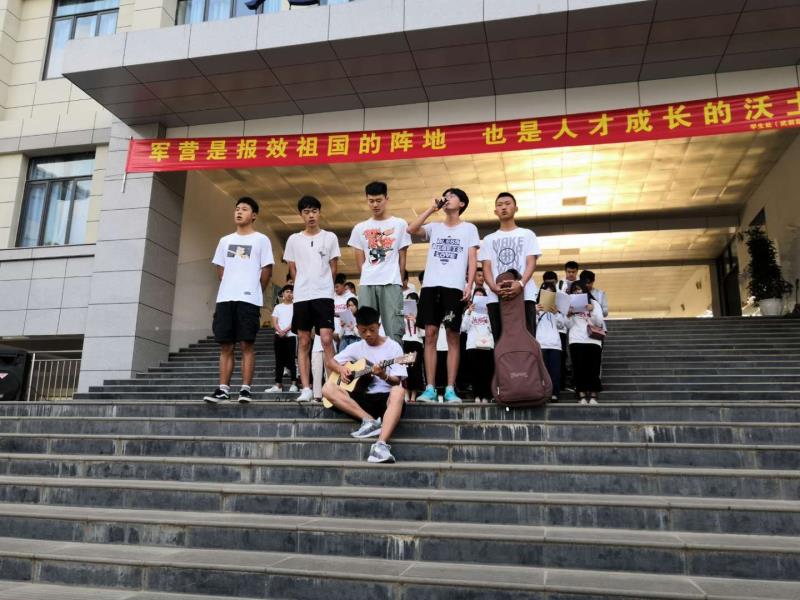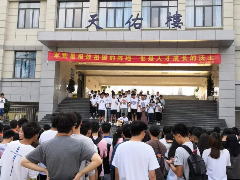 515日早上07:50分,17城轨机电5班作为晨会改革后的第一个展示班级首次登上了晨会的舞台。沐浴着朝阳,全班52名同学在天佑楼前进行了一场别开生面的班级展演。所有同学按照之前彩排好的队形依次上场排列整齐,先由6位同学带领全班齐唱《一万次悲伤》,音乐结束后,6位同学回到班级队伍中,全班同学齐声朗诵《面朝大海,春暖花开》。
