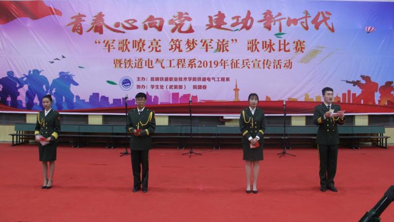 为加强爱国主义教育,厚植家国情怀,增强班级凝聚力和集体荣誉感,鼓励同学们积极响应国家号召,投身军营,新葡萄AMG官方网站铁道电气工程系于2019年5月16日晚隆重举行“军歌嘹亮 筑梦军旅”歌咏比赛暨2019年征兵宣传活动。