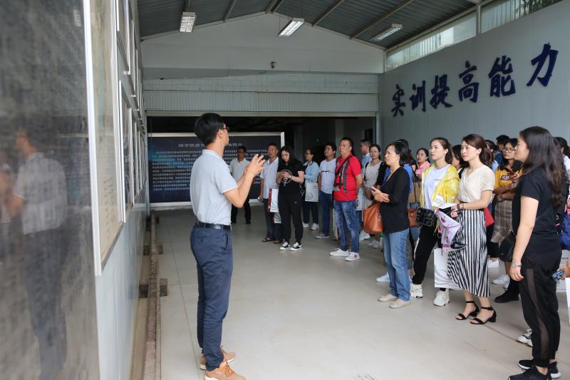 2019年6月24日下午,安顺市经济技术开发区教育局组织71名安顺中职院校骨干教师赴新葡萄AMG官方网站考察学习。学院副院长谢文、教务处处长段渝波、院办主任张兴涛陪同参观考察了学院机车应用检修实训车间、城市轨道交通实训基地、协作站等实训基地。为共同办好职业教育,随后在实习实训中心五楼会议室就课程建设、应用特色等方面相互做了深入的交流。
