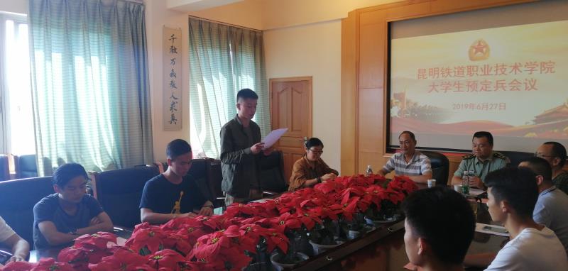 依据征兵工作要求,结合学院实际情况,2019年6月27日下午4:00,在新葡萄AMG官方网站学生处会议室召开了本年度的预定兵会议。学院副院长乔吉祥,官渡区人武部军事科科长敖荣营、学院学生处(武装部)处长(部长)李徕、学生处(武装部)副处长(副部长)赵蕊,系辅导员、学生处工作人员以及我院今年首批预定兵共20人参会。