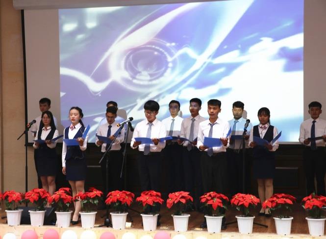 颁奖典礼由电气工程系学生李江玥和王云昆主持,以颁奖和节目表演交替进行的方式展开。随着热情欢快的彝族舞蹈《欢乐跳月》的开始,颁奖典礼拉开序幕。副院长尹光在热情洋溢致辞中,对本次读书系列活动进行了回顾与总结,对支持读书系列活动组织者、支持者和参与者表示了诚挚的谢意,向在读书系列活动中脱颖而出,获得奖励的同学表示祝贺,用高尔基、伏尔泰有关读书的至理名言阐述了读书的重要意义以及人为什么要读书等一系列感人至深、催人奋进的道理。最后,副院长尹光引用习近平总书记的读书观:“我最大的爱好是读书,读书可以让人保持思想活力,让人得到智慧启发,让人滋养浩然之气”来激励同学们多读书,读好书,为中华民族的伟大复兴而读书。