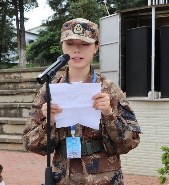 军训教官代表李雄纪代表全体教官发言,承诺在军训期间将严格按照要求完成带训任务。站务3班马润代表全体受训学员发言,承诺服从命令,听从指挥,苦练基本功,磨练意志,巩固军训成果。