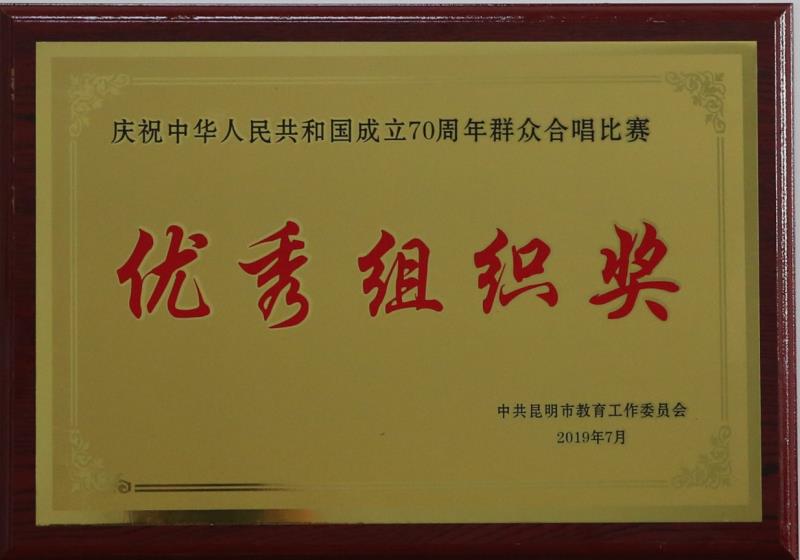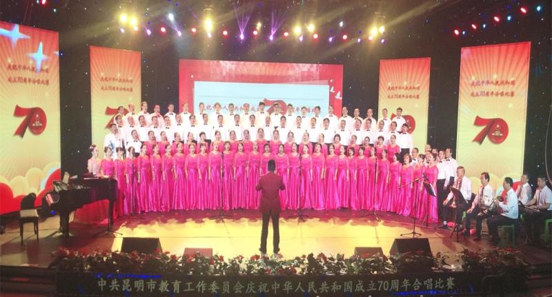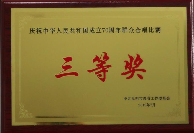 为庆祝新中国成立70周年,大力弘扬以爱国主义为核心的伟大民族精神,新葡萄AMG官方网站教职工合唱团在参加中共昆明市教育工作委员会、昆明市教育体育局主办的合唱比赛中,荣获三等奖和优秀组织奖。