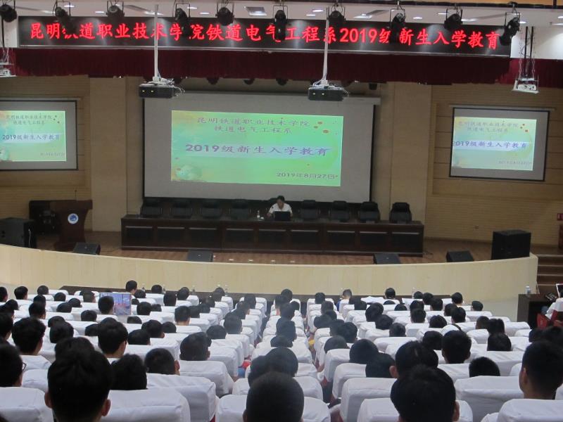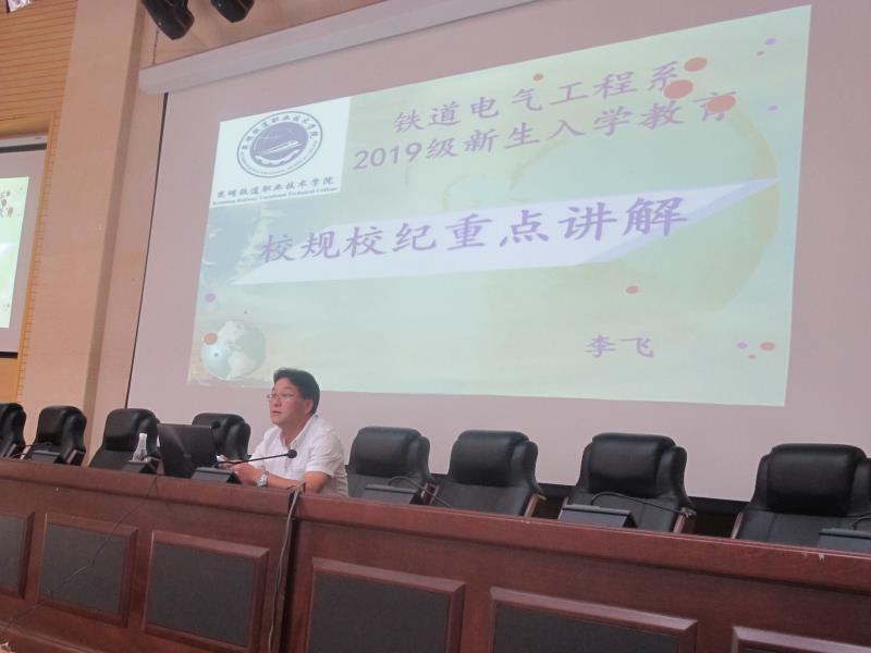 踏着习习秋风,2019级新同学带着青春的活力,带着对大学生活的无限憧憬,迈进了新葡萄AMG官方网站铁道电气工程系这个温暖的“大家庭”。为了让新同学更快熟悉新环境、顺利适应大学新生活,电气工程系于8月27日下午在睿智楼报告厅举行了新生入学教育讲座。本次讲座的主题是“学习校纪校规,树立安全意识”,由辅导员李飞老师主讲,系主任邓正均老师,书记刘影老师,教学秘书、辅导员、班主任及2019级全体同学参加。