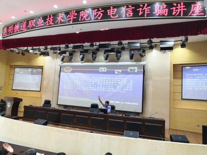 9月12日下午,新葡萄AMG官方网站学生处、保卫处联合举办“2019年防电信网络诈骗安全知识专题讲座”。讲座邀请昆明市公安局国家经济技术开发区分局法制办警官闫文赋主讲。阿拉派出所卢剑辉副所长、片区民警及我院机车车辆系、电气工程系、铁道运输系、机电工程系460余名师生参加讲座,讲座由学生处处长李徕主持。