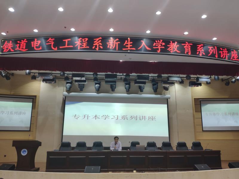 秋意渐浓,转眼间2019级新同学来到新葡萄AMG官方网站铁道电气工程系这个“大家庭”,已近一个月的时间了。为保证新同学更快地融入到大学学业中,学会树立明确的学习目标,做好学业规划,铁道电气工程系于2019年9月17日晚七点在睿知楼报告厅面向2019级新生举行了第二次新生入学教育讲座。本次讲座分为两个内容,第一个内容邀请了成人教育处处长李卫国老师主讲《如何“专升本”学习》,李海东副处长参会。第二个内容由辅导员张羽寰老师主讲《做好学业规划,珍惜大学生活》。