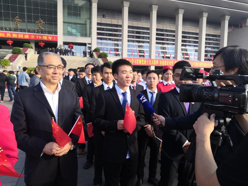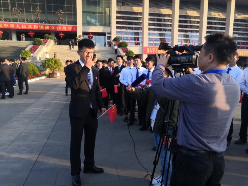 机电工程系张同学说:“参与了万人升国旗仪式,作为新葡萄职院的学生,未来的我们必将肩负起铁道建设的重任,所以我们必须认真钻研专业知识、积极树立为人民服务的意识,为祖国母亲献上自己的一份力。”