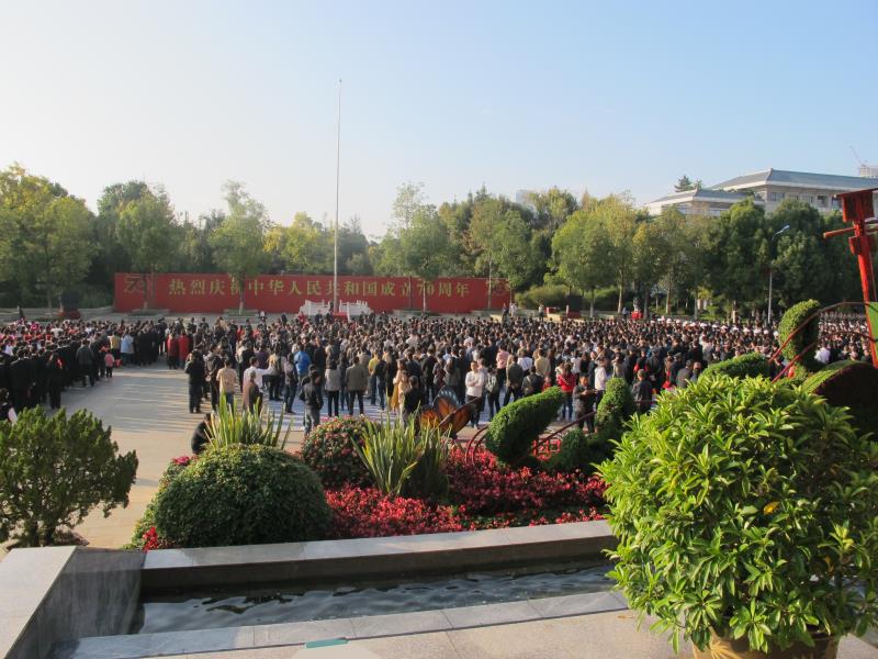 在昆明市各机关代表和全体师生的注目礼下,伴随着激昂雄壮的国歌声,鲜艳的五星红旗冉冉升起、迎风飘扬,在场的每一个人深怀对祖国无限的热爱与崇高的敬意,用嘹亮的歌声祝福祖国母亲。