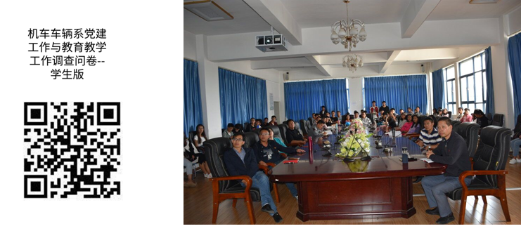 按照学院党委主题教育推进工作计划,铁道机车车辆系党支部就如何在教育教学工作中发挥党建的引领作用进行了广泛的讨论。作为铁道机车车辆系的一名党员,要先从素质养成做起,从最简单的小事做起。铁道机车车辆系党支部利用二维码新媒体技术制作面向学生和老师的调查问卷,广泛听取意见。