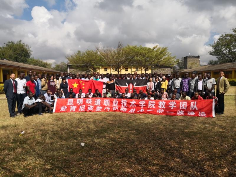 党支部书记林世烈老师带队的教学团队在肯尼亚蒙内铁路培训时与非洲学员的合影
