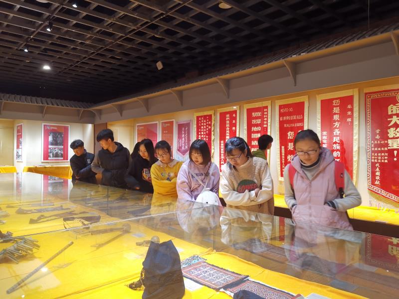 为隆重庆祝中华人民共和国成立70周年、全面深入了解云南民族工作和70年来取得的伟大成就。2019年12月17日,学院组织师生代表前往云南民族博物馆参观“铸牢中华民族共同体意识 建设全国民族团结进步示范区——中国特色解决民族问题正确道路的云南实践”专题展。