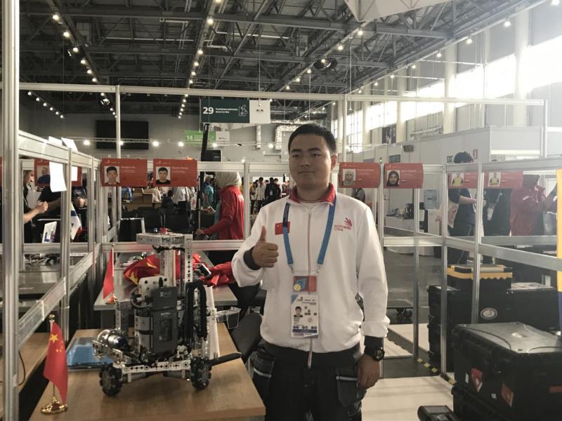 世界技能大赛被誉为“世界技能奥林匹克”,是最高层级的世界性职业技能赛事,引领和代表着职业技能发展的世界先进水平。移动机器人项目则是世界技能大赛中技术含量最高的项目。2018年12月,郑棋元在移动机器人项目上成绩突出,被云南省人力资源和社会保障厅、云南省财政厅授予“云南省技术能手”的称号;在2019年4月北京赛区举行的移动机器人项目集中阶段考核中,郑棋元和广东机电学院胡耿军通过层层选拔赛,脱颖而出获得全国第一名。2019年6月,人力资源和社会保障部世界技能大赛组委会确定了第45届世赛中国选手名单,移动机器人项目中国入选,出征喀山世赛。2019年6月,郑棋元被人社部授予“全国技术能手”称号。2019年8月22日-27日,在俄罗斯喀山的世界技能大赛上,移动机器人项目比赛异常激烈,惊心动魄,郑棋元所代表的中国队最终以95.5分的总成绩,斩落了该项目五冠王韩国队,获得第一名,夺得金牌,实现了中国队在该项目上金牌零的突破。