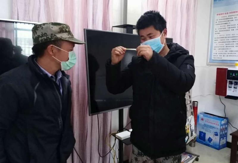 2017级铁道运营管理2班的杨占泽同学,在村委会宣传抗疫工作时,积极报名参与到村里抗疫一线,负责在村里的劝返点对进出人员进行登记。