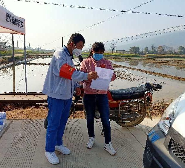 2018高铁乘务的唐湘同学,积极响应勤丰镇疫情防控志愿者服务活动,到所在地村委会报名,配合村委会负责人,开展“勤丰镇高楼村委会新型冠状病毒疫情防控”工作,每天在卡点处帮忙登记进出人员信息、来源地区及进出村事由和测量体温,提醒村民佩戴口罩。