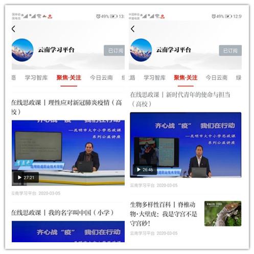 本周,学院组织广大同学收看了我院李启开、李映才两位老师参与讲授的《齐心抗“疫”,我们在行动—昆明市大中小学思政课系列公益讲座》,学习强国APP也通过云南学习平台“聚焦·关注”频道发布了讲座视频。 “全国大学生同上一堂疫情防控思政大课”和学院的思政课公益讲座先后推出,正是这种“同频共振”的方式,从思想上情感中不断激励着全院师生对国家和学院发展的担当和贡献。