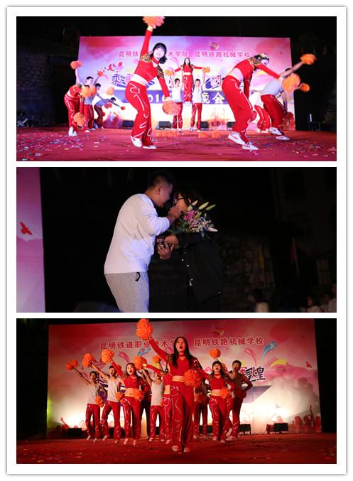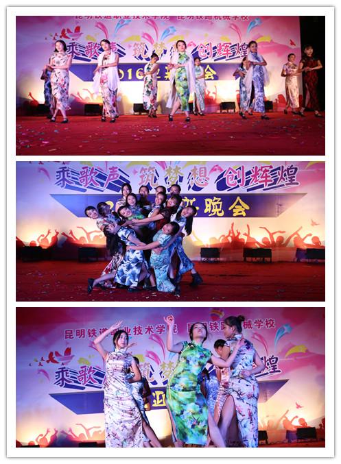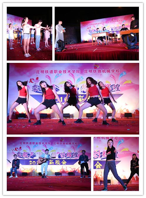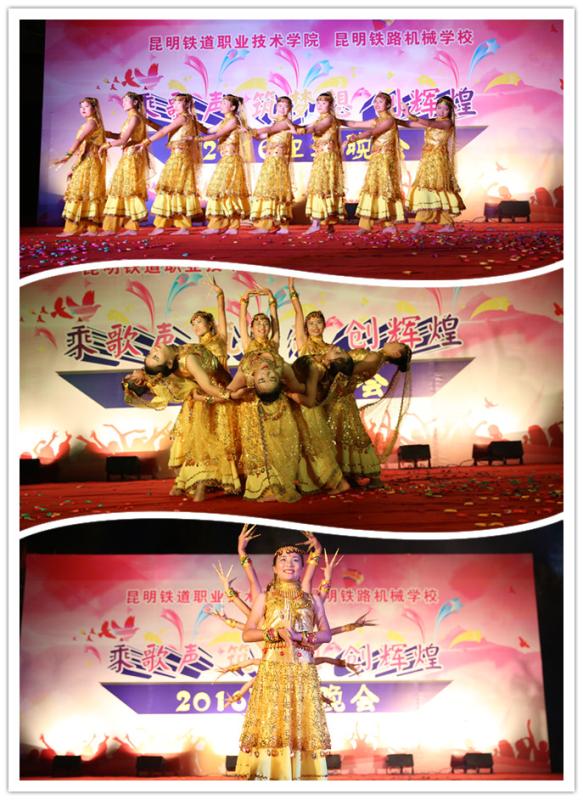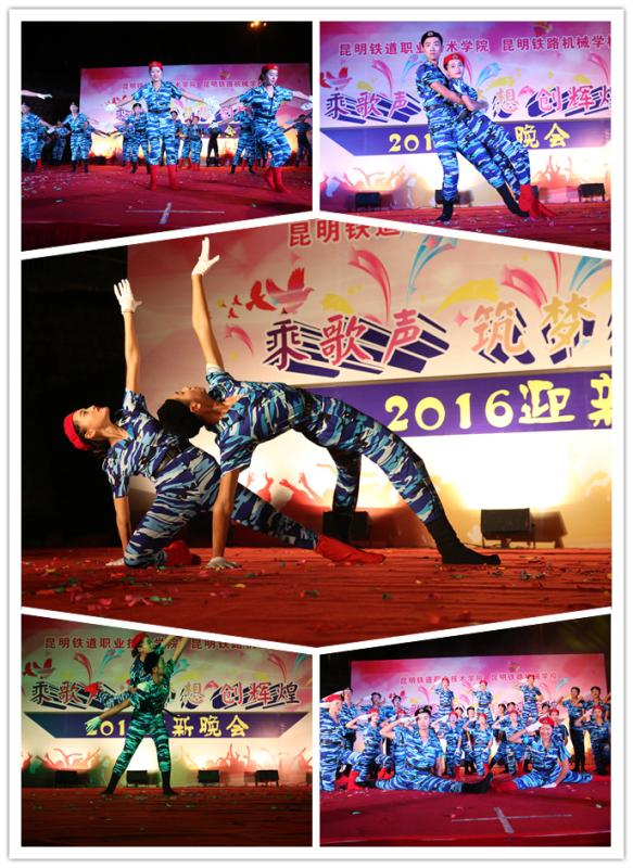 晚会在学校吉他社同学一曲《平凡之路》的演唱中拉开序幕。同学们自编自演的歌曲串烧、舞蹈、相声、小品、健美操、诗朗诵,十几个精彩的节目令人目不暇接,引来阵阵掌声喝彩。校团委文艺部同学表演的舞蹈《阿拉伯之夜》以独特优美的舞姿展示了西域风情,运输系和机车车辆系联袂演出舞蹈《军魂》,表现了一群头戴贝雷帽身穿迷彩服的解放军战士训练场景,将女兵的柔美与战士的刚毅完美地结合,保卫科木青科长浑厚激昂富有磁性的声音,把《强军战歌》《敢问路在何方》两首经典歌曲演绎的淋漓尽致,让观众沉醉,引起同学尖叫呐喊。晚会在歌曲《红蜻蜓》的优美旋律中圆满结束。