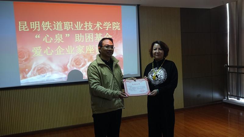 据悉,“心泉”助困基金由学校党委书记、校长王树华同志倡议发起,并带头捐赠了自己所获得的昆明市十大“杰出园丁”2万元奖金作为启动资金,专门用于帮助学院教职工和学生减轻因家庭深度贫困、患严重疾病或其它特殊原因所造成的特殊困难而设立的群众性扶贫助困专项基金。基金以救济、解难、帮困为原则,基金自去年12月底成立以来,已经收到师生员工及社会各界捐款十五万元,已有3名师生员工得到资助。