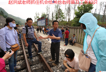 6月9日下午14:00我们一行32人在曲靖工务段劳资科长陈自平、职教科全体同志的陪同下,乘汽车到威红线K22参观新桥隧道病害整治施工(增设密井暗管、基础换填施工)。汽车在盘山路上走了一个小时才停了下来。地面温度32度,俨然是一个盛夏酷暑。曲靖工务段职教科潘老师首先给大家进行了安全教育,请大家穿上了黄马褂,沿着陡峭而弯曲的小路向半山腰的铁路隧道病害整治施工现场行进。在红果桥路车间罗江永工长的带领下,我们分成两批、每批16人进入了隧道。在隧道里的每一个病害整治施工现场,大家都在认真地看、不停地问和拍照。因为隧道里光线太暗、施工的噪音非常大、粉尘太多,说话完全靠吼,原定请红果桥路车间罗江永工长全程讲解的内容只好临时取消,改为学习结束、出隧道后再介绍施工情况。因为隧道里经常出现地下水渗水,为防止隧道路基翻浆冒泥、影响行车安全,就要在隧道铁路两侧修建排水沟、每隔五米增设密井暗管。我们的铁路工人在光线昏暗的隧道里施工,顶着高温与酷暑,克服噪音和粉尘,确保了铁路大动脉的畅通与安全,我为他们不怕苦、不怕累的敬业精神点赞!我们去参加培训学习的老师已经被他们的精神深深感动了!本次活动一直持续到下午五时,我们才乘车返回新华能源国际酒店。晚餐后,曲靖工务段主管生产的顾怀力副段长,在百忙之中抽出时间来看望全体参培教师。顾怀力副段长、劳资陈自平科长、职教科全体同志与全体参培教师一起共叙校企友谊、共话校企发展。展望未来,我们对铁路企业与学校的合作、发展、共赢的前景充满了信心!