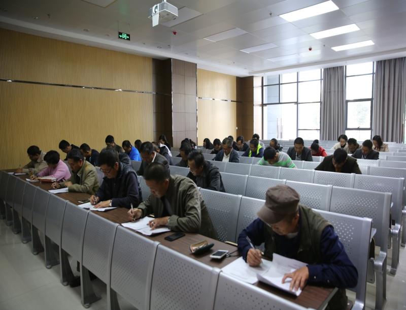 正当全国人民掀起深入学习党的十九大精神之际,11 13日下午,新葡萄AMG官方网站行政党总支举办了一场“喜迎十九大 做合格党员”知识竞赛活动,行政党总支所共有48名党员参加了竞赛活动。本次竞赛采取笔试闭卷考试的方法进行。知识竞赛的内容是从党的十八大以来90个新名词作为基本知识点, 内容涵盖党的十九大精神、党章党规党纪等,分为填空题、选择题、简答题三种。竞赛由学校党委书记王树华主持下进行,大家沉着冷静,从容作答。无论是年过半百的老党员,还是年轻党员都认真仔细答题。通过竞赛,展现了行政党总支全体党员积极向上、砥砺奋进的精神风貌。也是对上阶段党总支、支部“两学一做”学习教育成果的一次检阅。