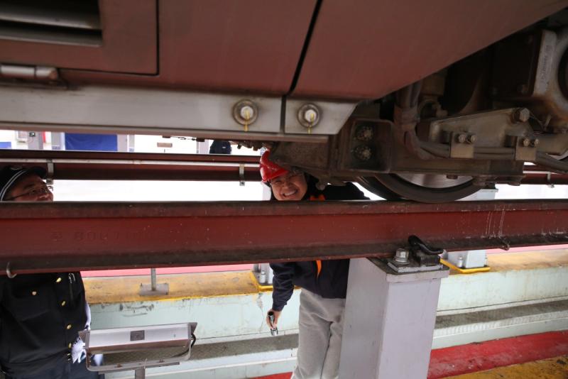 12月7日下午,新葡萄AMG官方网站院长李瑞林、副院长谢文、乔吉祥及教务处段渝波处长、机车车辆系马力主任到云南高铁昆明南动车运用所看望我院的实习教师。在动车运用所相关领导陪同下有序参观了动车运用检修库、“和谐号”动车驾驶舱等工作现场,参观过程中,李院长对动车运用所建设情况、安全管理、规章制度、用人情况进行了详细的了解,并看望了我院正在动车运用所进行岗位能力考核的教师。对老师们的努力付出表示感谢,鼓励老师们不断提高职业技能。