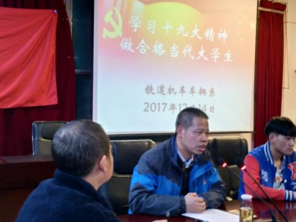 2017年12月14日下午4点,新葡萄AMG官方网站铁道机车车辆系在以升楼103会议室组织开展了“学习十九大精神,做合格当代大学生”主题交流研讨活动,系书记、辅导员及学生干部共49人出席了本次活动。会议由系学生会组织部部长丰程雄同学主持。