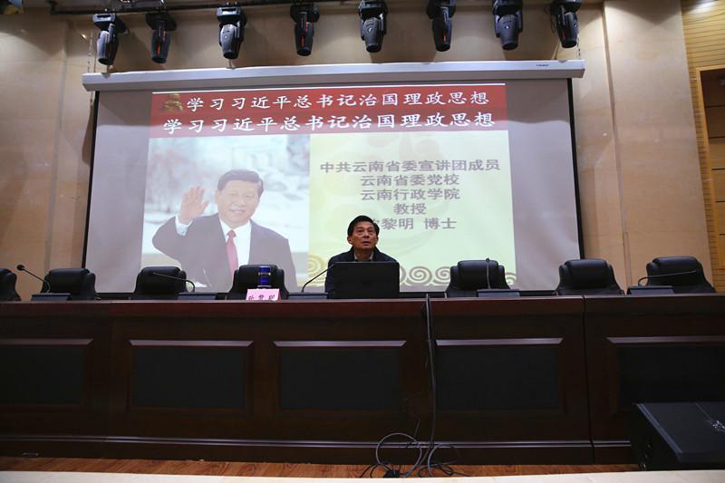 12月26日,根据省委宣传部、省委高校工委要求,我院邀请省委宣讲团成员、云南省委党校副校长、云南行政学院副院长欧黎明教授到校作了题为《学习习近平总书记治国理政思想》宣讲报告会。