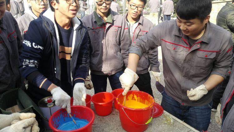 第二天,等底漆干透后,进入第三道工序:涂装面漆!这道工序关系到最终的涂装效果!同学们在认真得按照比例配置油漆!