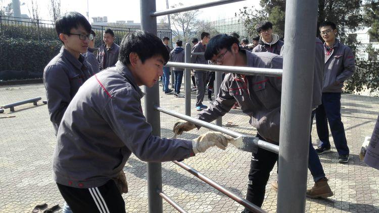 2017年12月25.26日,我院铁道电气工程系轨道工程教研室的冯涛老师,因地制宜,结合本学期所授课程《铁路桥涵构造施工与维护》中所涉及的“铁路钢结构涂装实训”项目,带领16级铁道工程技术专业1、2班的同学,对学院内缺少维护的公共体育设施进行涂装作业。