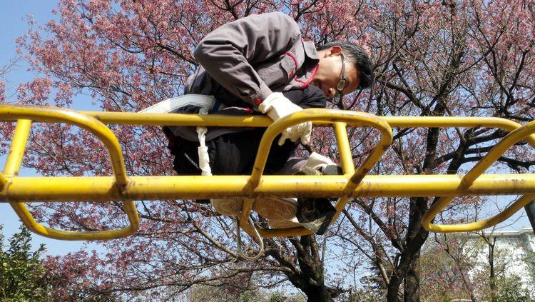 明媚的阳光中,在盛开的冬樱花映衬下显得缺点什么!?