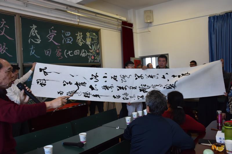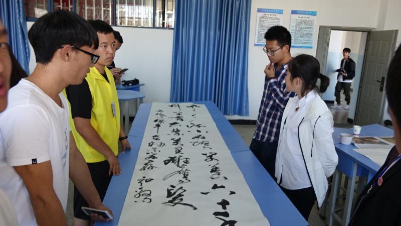 王弘毅教授也参与到了其中。他为大家讲解了书法的奥妙和精髓,一件好的书法作品,包含了很多东西,要用语言把它描述出来,实在太难。好的书法作品需要用心去品味 。书法艺术古老而独特,承载了中国传统文化的内涵,表现了我们民族的审美意识,是中华民族聪明才智的集中表现。书法是非常注重承传古典传统的艺术, 其中书法是一大亮点 ,中国书法艺术的魅力,要在长期的练习中形成肌肉模板,不要随意就写出一个字,如果这样就算练一万遍也不能领悟到书法的精髓,书法就是把自己的灵魂融入到字里。同学们积极参与到现场创作书法的活动中也使得其增添了一份色彩。