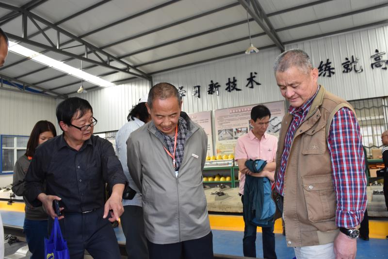 紧接着“长江学者”李芾教授与74级校友一起步行来到新葡萄协作站,参观了协作站里的高速铁路实训场地,好学的同学们向教授提出了在学习专业时的疑问,李教授都一一耐心的解答。