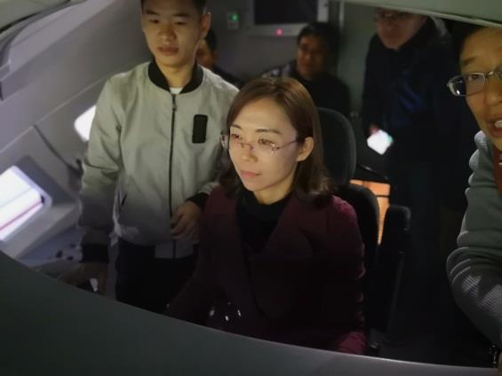 李瑞林院长、张学云书记等亲自到高速动车组六维度模拟驾驶仓进行驾驶体验,切身感受高铁司机的高技能、高素质、高度责任感等岗位要求和职业精神。